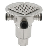 Blücher Square type 351. Til installation mod i beton- og klinkegulve, med lodret Ø75mm udløb, samt 3 stk. Ø32/40 mm sideindløb, med membranflange til vådrumssikring.