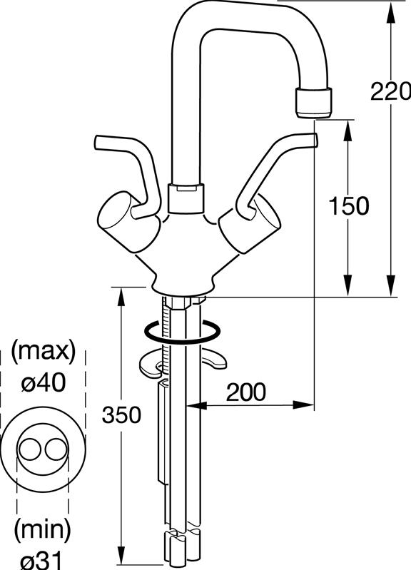 Børma Handi køkkenbatteri B7549AA. Med U-tud og keramiske ventiloverdele |