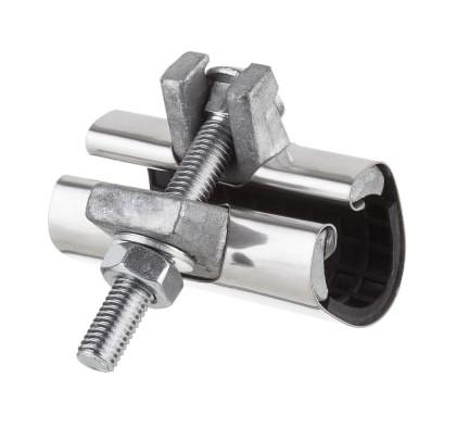 Reparationsklemmen er velegnet til permanent reparation af utætte rør. Reparationsklemmen samt bolt og møtrik er fremstillet i rustfrit stål, med NBR-pakning.