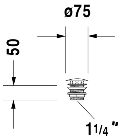 Duravit bundventil (50mm) med kappe krom. Bundventilen er til vaske uden overløb i vasken (bundventilen lukker ikke helt tæt) Diameter ø 75 mm |