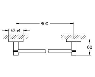 Grohe Essentials håndklædestang - 800mm - Krom Håndklædestangen er uundværlig på både badeværelse og gæstetoilet. Den sørger for at du både kan have dine håndklæder hængende til tørre og at du kan have håndklæder hængende pænt foldet, klar til brug. Designet er super enkelt, ligesom alt andet badeværelsestilbehør fra Grohe Essentials. De runde rosetter går igen og bliver her kombineret med selve stangen til håndklæder. Håndklædestangen har fået Grohe Long-Life Shine-krombelægning, hvilket giver en flot, blank overflade, men også sikrer en slidstærk overflade og et flot produkt i mange år. Specifikationer: