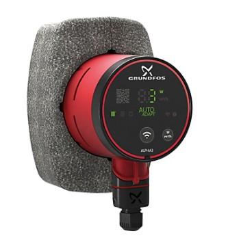 ALPHA2 og ALPHA3 tilbyder samme lave energiforbrug. ALPHA3 har dog flere fordele og funktioner. F.eks. kan du via din smartphone kommunikere trådløst med pumpen, fejlfinde, benytte den indbyggede indreguleringsfunktion og generere en rapport, som anvendes som dokumentation ifm. ibrugtagningstilladelse. Cirkulationspumpe af vådløbertypen med høj virkningsgrad, beregnet til cirkulation af væsker i varmeanlæg. Med et energieffektivitetsindeks (EEI) i verdensklasse langt under ErP-benchmarket sikrer pumpen væsentlige energibesparelser. ALPHA3 har indbygget Bluetooth og styres via smartphone eller tablet ved hjælp af Grundfos GO Remote-appen. Appen giver trinvis vejledning til konfiguration af pumpe samt vedligeholdelse og idriftsættelse. ALPHA3 kommunikerer direkte med Grundfos GO Balance-appen, hvilket gør det muligt for installatører at foretage hurtig og nem indregulering. AUTOADAPT-funktionen, der er integreret i radiator- og gulvvarme-tilstand, justerer løbende pumpeydelsen til det aktuelle varmebehov, dvs. anlæggets størrelse og det skiftende varmebehov i årets løb. Funktionen AUTOADAPT finder den indstilling, der giver optimal komfort og minimalt energiforbrug. Dermed giver det også hurtig, sikker og nem idriftsættelse. Funktioner