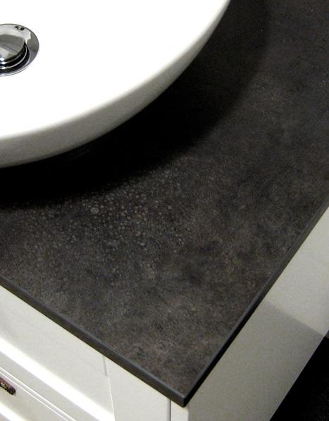 Hafa Eden bordplade 121 - Dark Grey Stone Bordplade i mørkegråt, stenmønstret laminat. Boring af huller til håndvask og blandingsbatteri udføres af installatøren alt efter håndvaskmodel og valg af placering. Mål: 1210X465