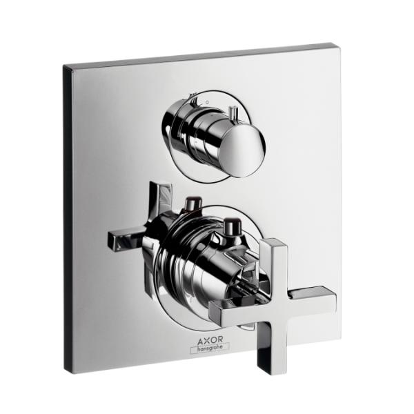 Hansgrohe Axor Citterio termostatbatteri med afspærring og omskifter. Med Krydsgreb. Kappesæt bestående af 2 greb og roset. Kombineres med Ibox Universal og lækagesikringer (se relaterede varer nedenfor). |