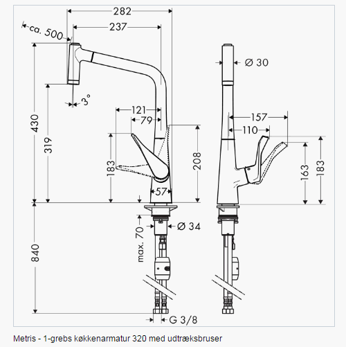 Hansgrohe Metris køkkenarmatur m/udtræk og omskifter - Krom
