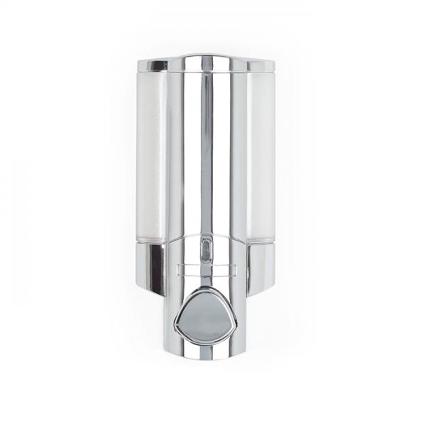 HeFe Aviva I sæbedispenser - Krom Gør dit bad flottere og tilføj en følelse af spa og wellness med elegant væghængt sæbedispenser - og slip af med grimme og besværlige shampoo/body wash-flasker. Der medfølger små klistermærker med Shampoo/Balsam/Shower gel/Soap/Lotion til at sætte på dispenseren. Sæbedispenseren er velegnet til sæbe, shampoo, balsam, lette cremer og håndsprit. Aviva I er også perfekt til miljøbeviste hoteller, som ønsker af mere grøn og holdbar løsning end de små engangsflasker i plastik. Du kan bestille dispenseren med lås. Låsen sidder i låget og låser låget fast og låser dispenseren fast til vægbeslaget.