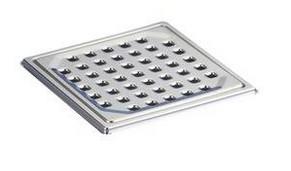Syrefast rustfri rist og ramme. Rammen skal altid have forbindelse med gulvafløbet og fuges tæt - evt. med Foscoc Secomastic, DaMastic 551 eller Bostik 2640. Produktet er mønsterbeskyttet. BRUG ALDRIG SILICONE. |