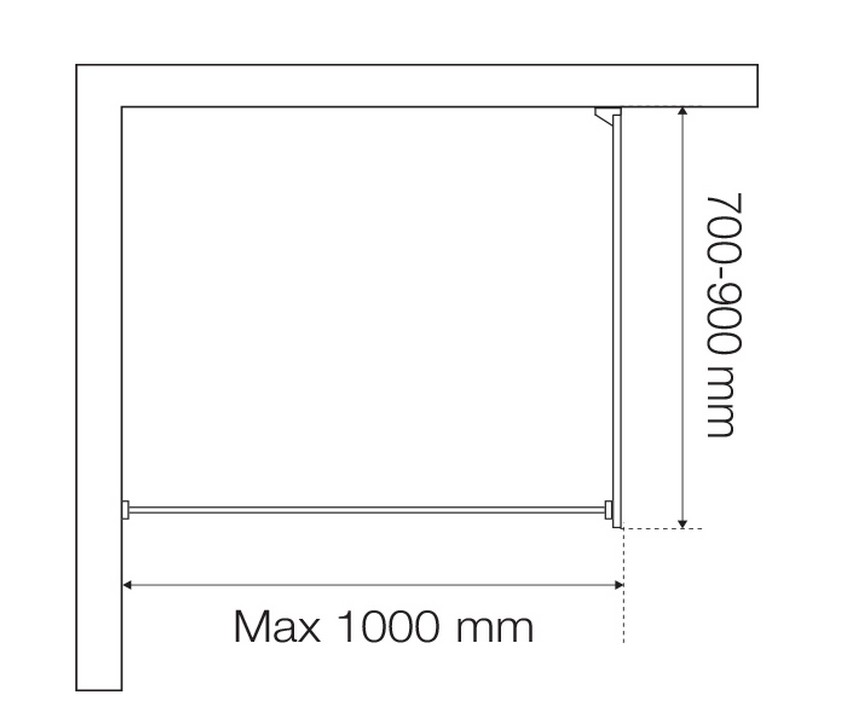 Elegant fast brusevæg Strømberg Font Walk-in bruseafskærmning 700mm fast væg m/100cm stang, frostet glas Højde 2000 mm Billedet viser med klart glas |