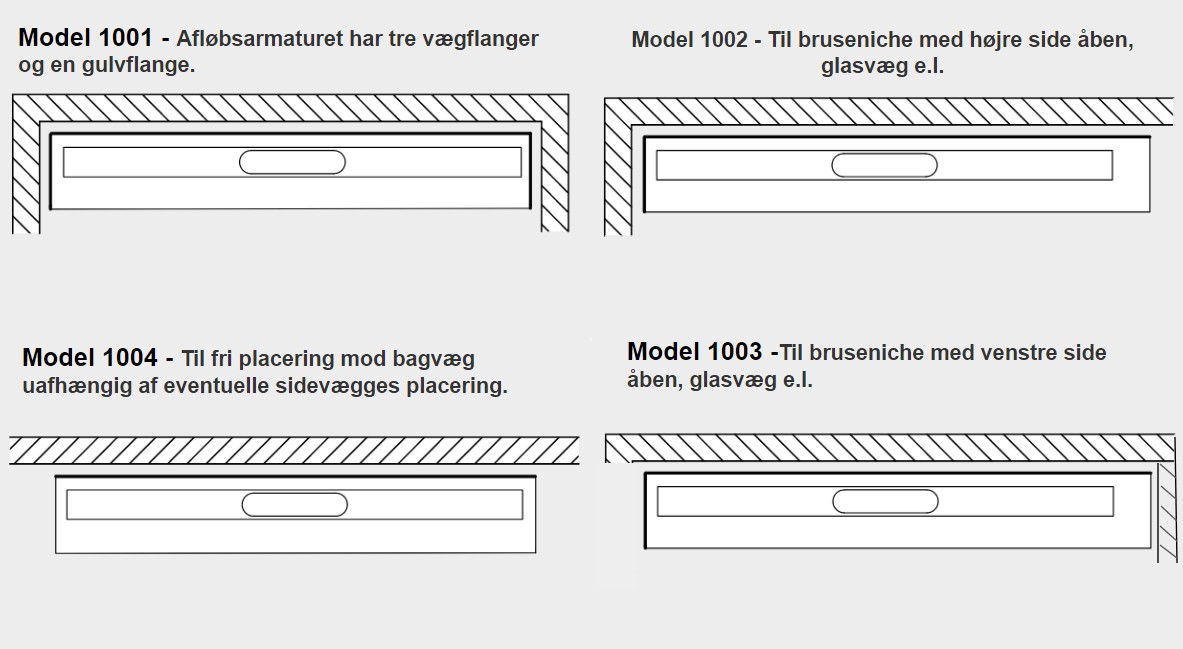 Udløbshus og afløbsarmatur skal tilkøbes, se relaterede varer Se Guide for hvilke afløbsarmatur der passer til dit ønske/placering Ønskes en trævlesi for nemmere rengøring, så kan den tilkøbes, se relaterede varer |