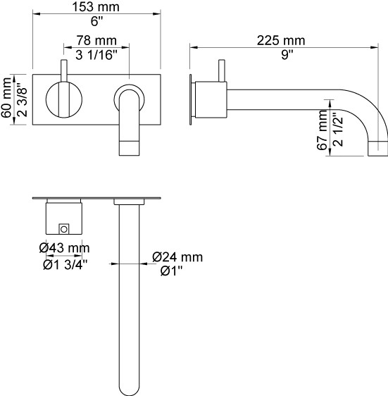 Vola Et-grebsblander for stor vandmængde med keramisk ventilenhed og fast afgangsmuffe Fast udløb, 225 mm, ø24 mm Krom 16 ½''RG/PEX