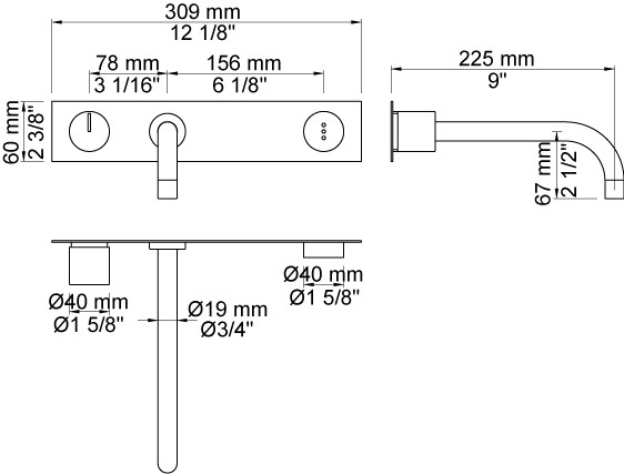 Vola Indbygningsblander til berøringsfri betjening Dækplade Krom 16 ½''RG |