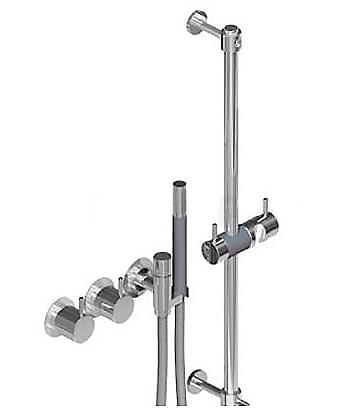 Vola Indbygningstermostat med fast afgangsmuffe T2 håndbruser med metalslange og holder til højre Rosetter Krom 16 3/4''RG/PEX