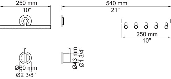 Vola Et-grebsblander for stor vandmængde med keramisk ventilenhed og løs afgangsmuffe Vægmonteret hovedbruser Rosetter Krom 16 ½''RG/PEX