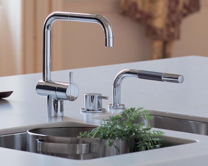 Et-grebsblander med keramisk ventilenhed og dobbelt svingbar tud samt et-grebsblander med keramisk ventilenhed, for sargmontage, 500 med håndbruser T1 Dobbelt svingbar udløb, udlæg 200 mm, Ø19 mm Krom 16 SPX |