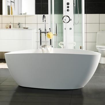 Westerbergs Ellipse badekar. Fremstillet i solidt støbemarmor, der holder længe på varmen, med en blød, lækker silkemat overflade. Unik form og stabilitet, som giver optimal komfort.